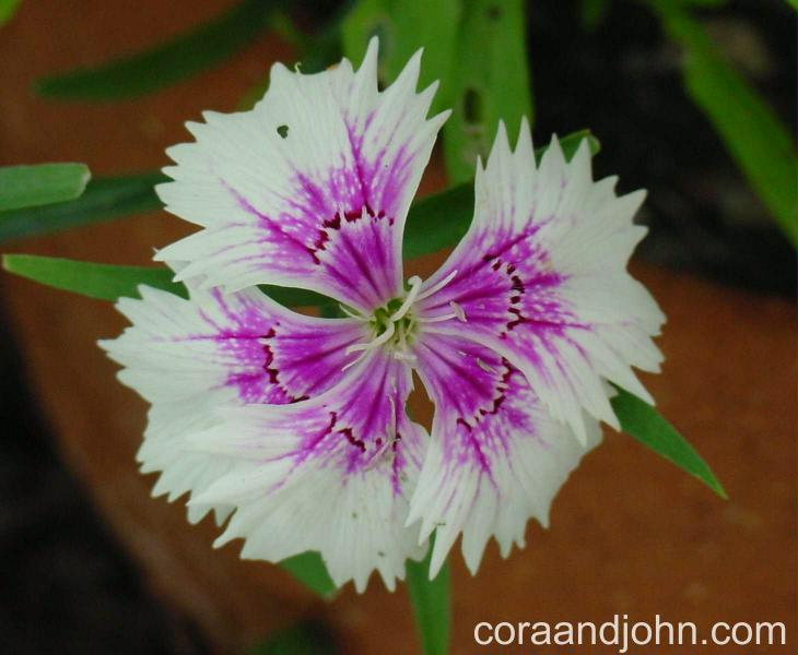 This is an annual variety of Dianthus from our greenhouses/gardens. The picture was taken in 2000.